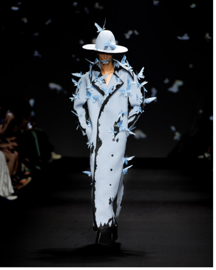Puis, lorsqu’on a tourné la page en juillet dernier, Time nous a fait découvrir la suite de son récit, en célébrant les 10 ans de créativité du designer. Lors de cette collection, une question a émergé : le temps passe. Cela peut-il brider la créativité ? Eh bien, nous connaissons la réponse du créateur. La nature cyclique de la vie l’inspire, et ne le limite pas. Un papillon, allégorie de la beauté qui fleurit. La progression des saisons, en commençant par l’hiver où nous vient la réflexion. Et au final, au travers de pièces invraisemblables, il nous montre que tout est question de peau, de chair, de squelette et d’âme. Ce dernier passage a représenté ce que Robert Wun nous laisse imaginer : c’est ce puits infini de nouvelles idées qui lui sert à créer cet art. Son art.